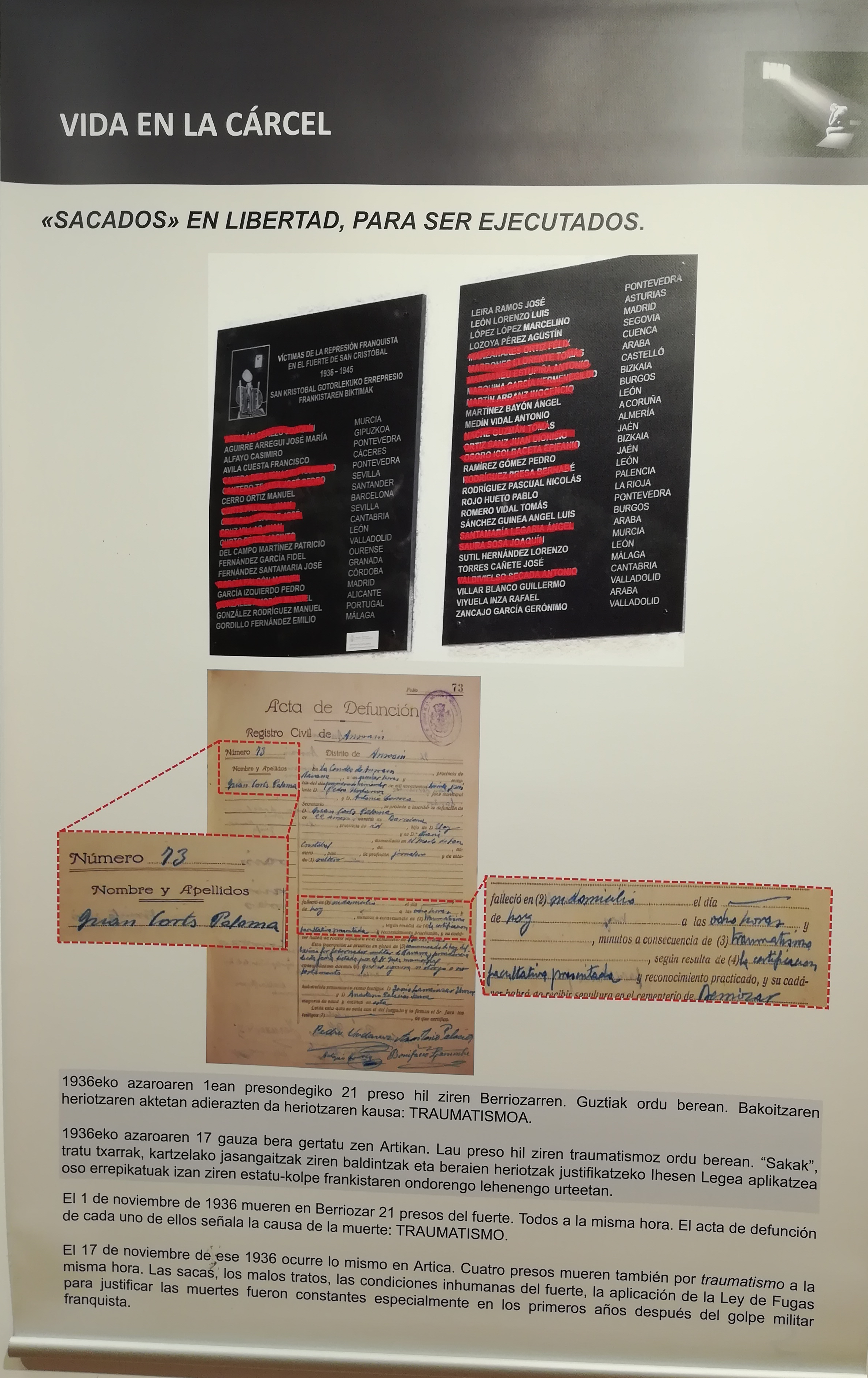 Un vecino de Azuqueca de Henares, Benjamín Redondo, trae a nuestra ciudad la exposición itinerante de la asociación Txinparta y de miembros de la Recuperación de la Memoria Histórica, para ilustrar un capítulo más, de los muchos que aún permanecen sepultados, de la terrible historia de la posguerra con sus represiones, crueldades y venganzas.