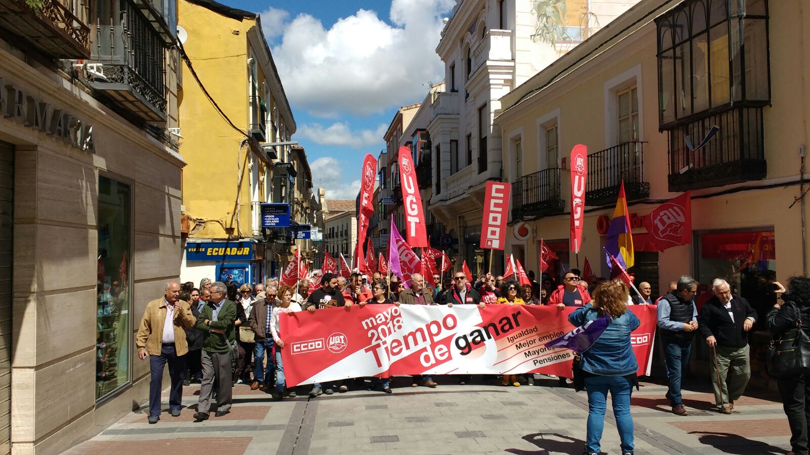 Varios miles de castellano-manchegos han clamado este martes en las manifestaciones celebradas en las principales ciudades de la región con motivo del Primero de Mayo, igualdad, mejor empleo, mayores salarios y pensiones dignas. Unas 9.600 personas, según las centrales convocantes han participado en las manifestaciones de Albacete, Toledo, Cuenca, Guadalajara, Talavera de la Reina, Alcázar de San Juan y Puertollano, así como en otras localidades de la región como Madrigueras (Albacete) y La Villa de Don Fadrique (Toledo).